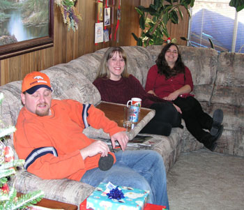 We spent Christmas Eve at Mike's Grandma's house with his parents, Rannae and Rob, Uncle Mark, Aunt Bella, Robert, Mark, and Sarah. Lots of good food and lots of fun were had by all. Mike took this picture after dinner. (Hopefully, I'll be able to get prints of some of the pictures his Dad took, since I know people like to see people pictures!)Christmas Morning at Mike's Parent's House