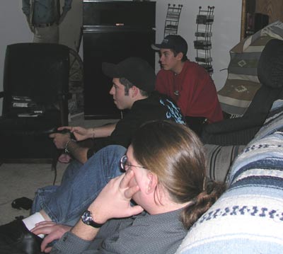 Rob, Rannae, and me goofing around on the couch while Mike plays with the flash settings on the digital camera