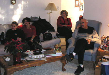 Here's the other part of the room, minus Mike's mom who was sitting next to me. From left to right, Bobbi's son, Bobbi and Bella's mom, Molly, Mike's grandma (mom to Mark and Terry) who is otherwise known as Grandma Kitty, and Bobbi and Bella's Dad, Bob.