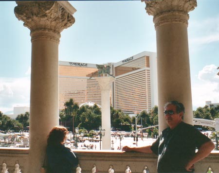 Mom and Dad at the Venetian (Mirage casino hotel in the background)