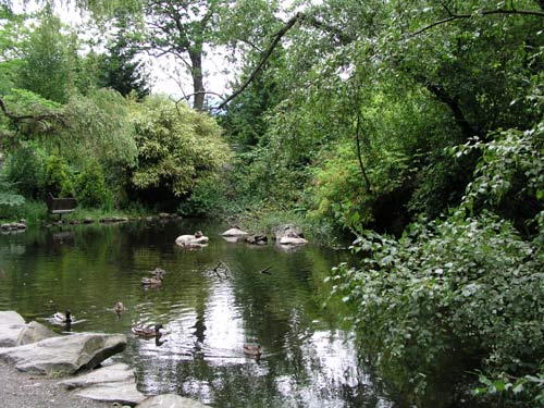 "Beautiful Stanley Park, a lush 405-hectare tree- and garden-carpeted peninsula jutting out into Burrand Inlet, is a sight for sore eyes in any weather - an enormous peaceful oasis sandwiched between the city center's skyscrapers and the North Shore at the other end of Lions Gate bridge. Unlike other famous parks, such as New York's Central Park and London's Royal Park, Stanley Park is a permanent preserve of wilderness in the heart of the city, complete with dense coastal forests and abundant wildlife. It was Alexander Hamilton, land commissioner for the Canadian Pacific Railway, whose proposal to preserve the end of Burrand Peninsula led to the creation of the park, which was later named for Lord Stanley, Canada's governor-general from 1888 to 1893. It is dedicated for "the use and enjoyment of all peoples of all colors, creeds, and customs for all time"."We did take a short walk, but the rain was finally on its way. As we took a few pictures of the gardens and local wildlife, a light sprinkle of rain turned into a steady downpour.