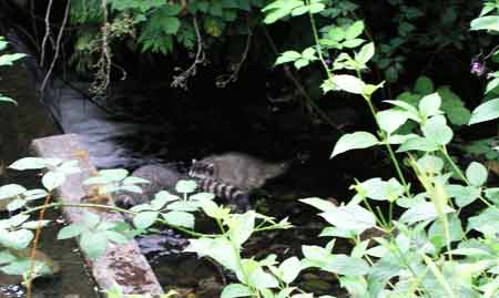 Across the path from that one, we found a family of raccoons emerging from the underbrush.