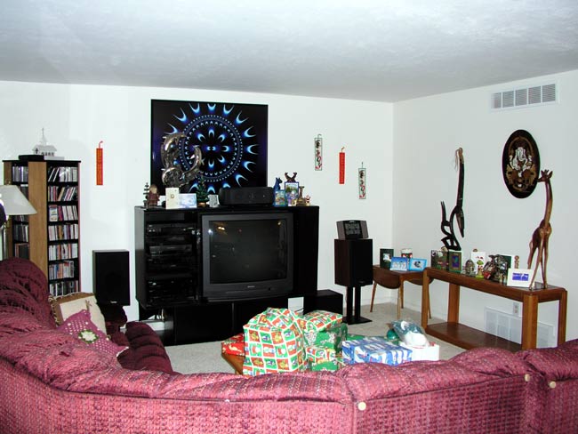 The living room, including some cards, decorations from my Grandma, and Phoebe.