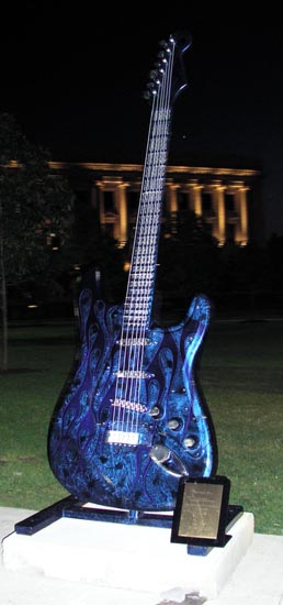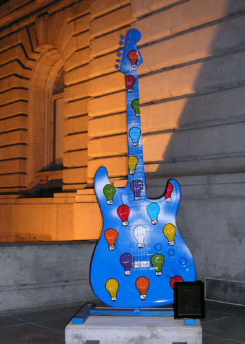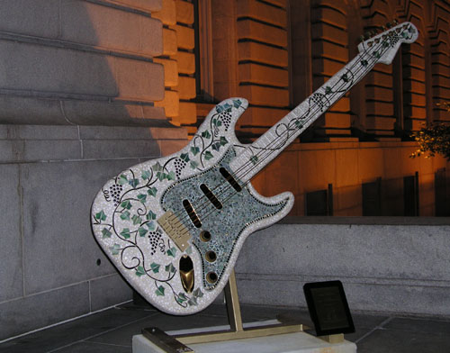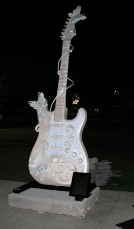 The display of guitarsis part of something called "GuitarMania". Many of the guitars were auctioned later that year, on November 6th. The profits are to go to the United Way and the Rock 'N Roll Hall of Fame education fund. A complete list of the guitars is available on the Guitar Mania web site.