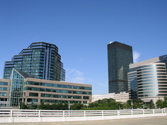 The city, as seen from the park