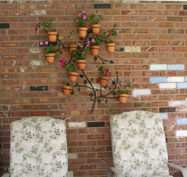 My parents sent this wall decoration for my birthday. Mike hung it on the patio, and we filled it with pink flowers.