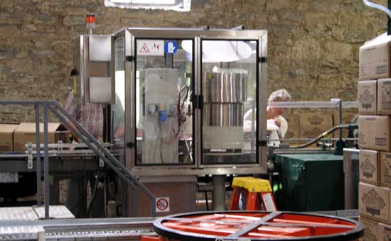"During the second distillation, we pump the low wine into the "high wine" still. As we heat this liquid the alcohol vaporizes a second time, goes through the condensation process again, and emerges as "high wine" at about 100 to 110 proof (50 - 55% alcohol). With each distillation, more impurities and water are removed from the liquid. "