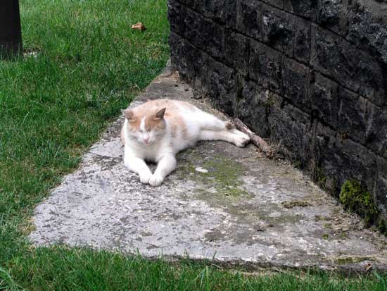 around the rafters. He is a permanent resident at the distillery, and I caught up with him outside the warehouse.