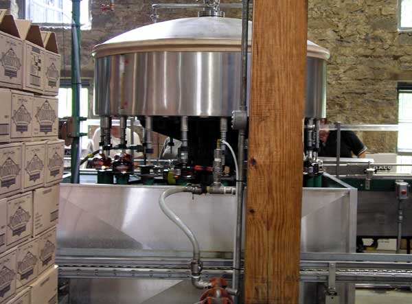 "The first "charge" (2500 gallons, or one-third of the fermenter's capacity) is pumped from the fermenter into still #1, called the "beer still." During distillation, the alcohol is separated from the water. "