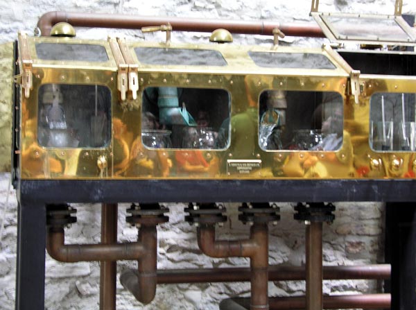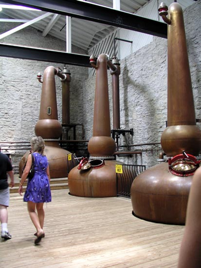 From there, we walked into the distillation room, with 3 very large stills. The process starts with the still furthest away and works