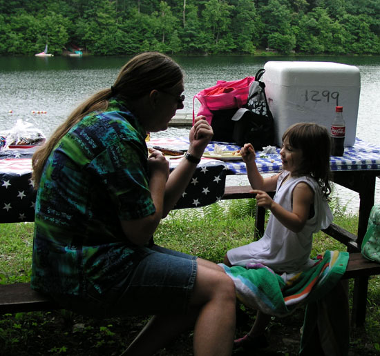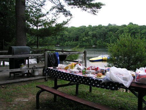 My parents' friends, Al and Lisa, brought their children, Renee and Danny, to the house for the 4th of July. They live just north of my parents, so they frequently visit when my parents are in Pennsylvania. We all went to the lake near my parents' house, where the housing association was sponsoring fireworks and a pot-luck BBQ.