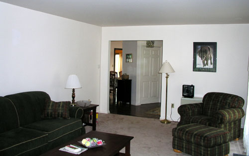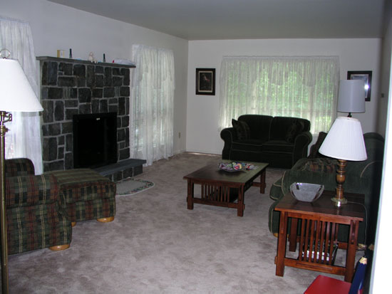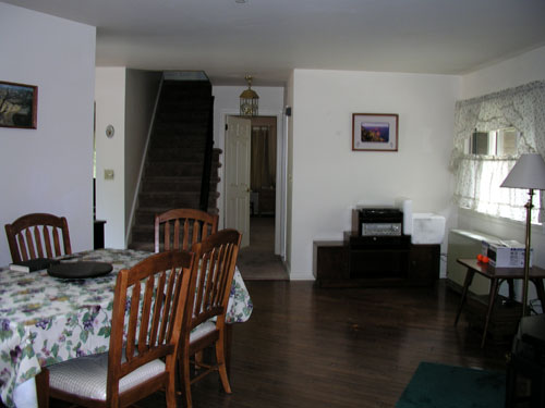 On the main floor, there is a master bedroom, living room, dining room, kitchen, garage, and sunroom (with my Dad and Mike.)