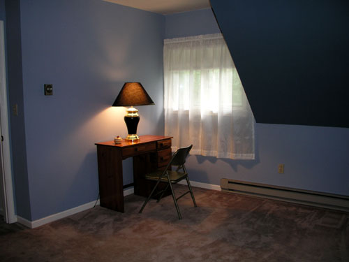 Upstairs, there is a guest bedroom (complete with Smoeky on my pillow), a full bathroom, and a study. The study has a small balcony.