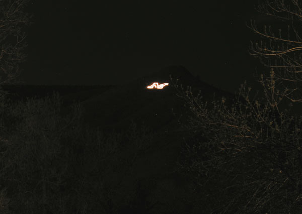 the mountain. At night, you don't see the white-washed rocks, just the lights that run along the outline. Mike's
