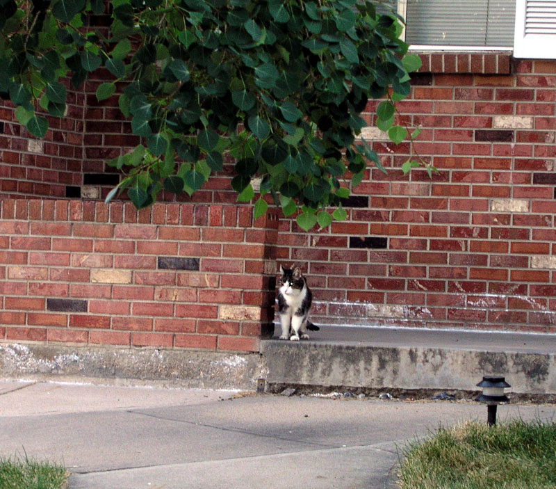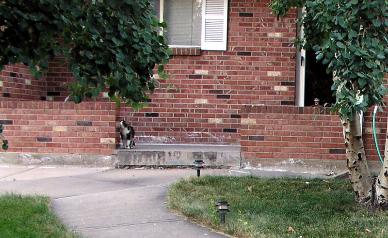 Mike and Phoebe went to the front of the house for a little walk. The brick there was always deemed rubbable.