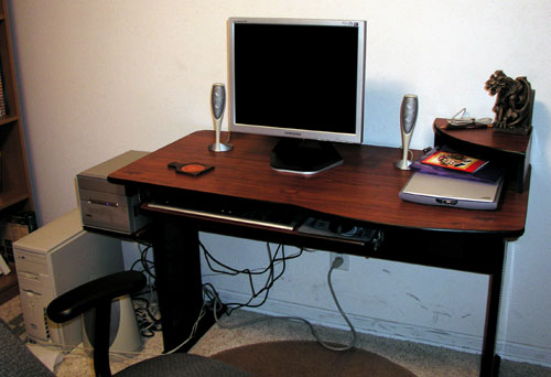 The first part of a plan to replace both PCs (my version of "remodeling") was to replace my computer. Mike ordered a nice, small, quiet Shuttle PC with a flat screen monitor. I don't know what I'll do with the extra desk space! Or should I say, I am desperately going to try to keep the extra desk space from getting clutter with junk. ;>)