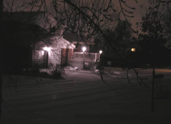 I received a request via Christmas card for more snow pictures. We haven't had much snow thus far this year, so I took a few pictures of the inch we had gotten at night.....just for something different. I've always loved how snow looks at night.