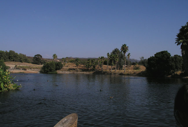 There was an area full of flamingos across the island from where the ducks and catfish were: