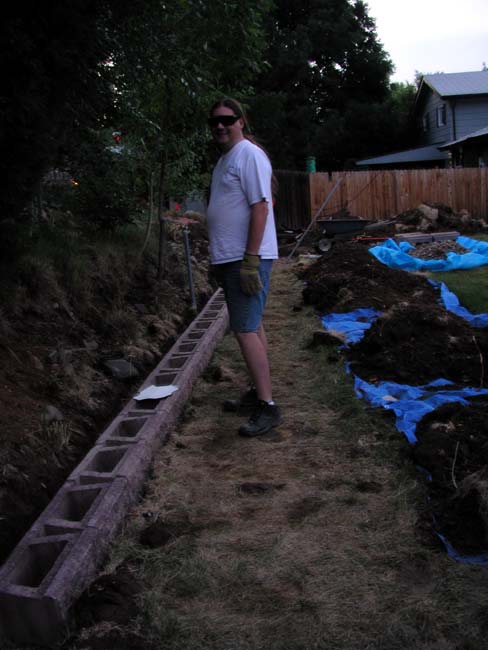 After digging an 8 - 12 inch deep ditch, filling the bottom few inches with gravels, and compacting it, it was time to