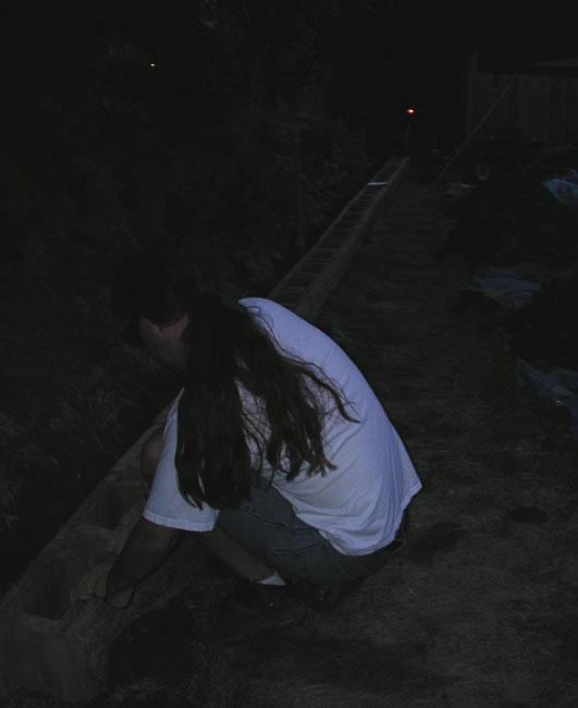 of Mike working with the laser on the last night to straighten the blocks. What you can't see in these pictures is that the