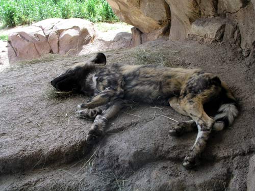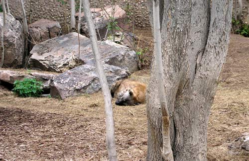 At Predator Ridge, we saw hyenas in one pen and a very sleep baby hyena with its mom in another.