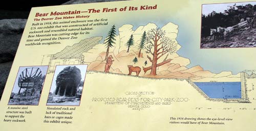 "Bear Mountain - The First of Its KindThe Denver Zoo makes history. Built in 1918, this animal enclosure was the first U.S. zoo exhibit that was constructed of artificial rockwork and resembled natural habitat. Bear mountain was cutting edge for its time and gained the Denver Zoo worldwide recognition.