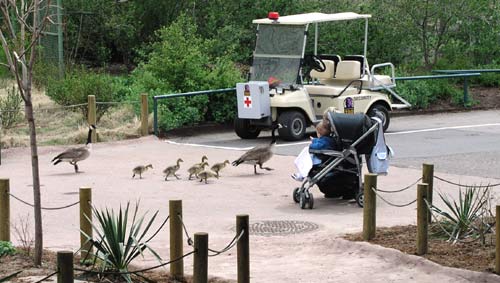 We stopped at a refreshments stand to get a drink. While sitting there, we saw a family of geese, who stopped