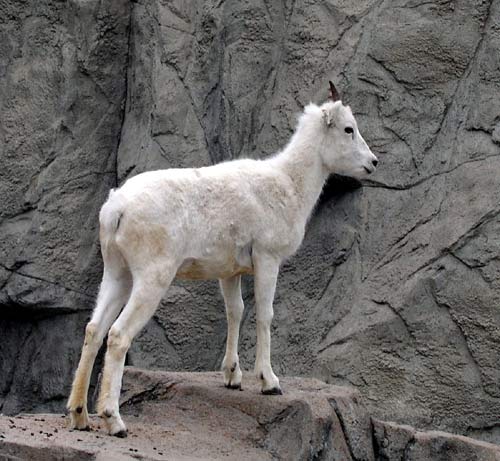With think white coats for warmth and camouflage, Dall sheep (Ovis dalli) make their home high in the mountains of Canada and Alaska. Most of the year, males and females live in separate groups. But fall is mating time when rams (males) seek out ewes (females) for breeding. No matter the season, Dall sheep stay on the lookout for predators. When threatened, they escape by bounding up rocky cliffs where few can follow.Adapted to life on the rocks