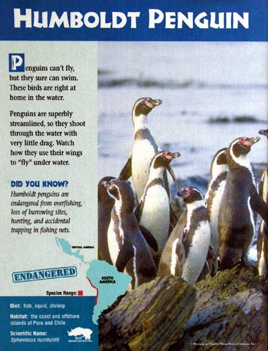 Did you know? Humboldt penguins are endangered from overfishing, loss of burrowing sites, hunting, and accidental trapping in fishing nets.