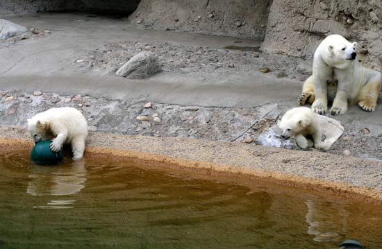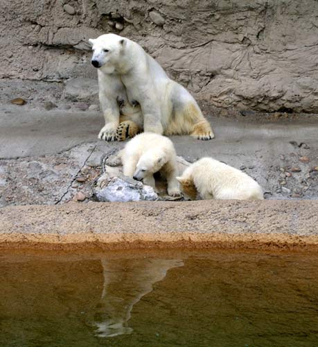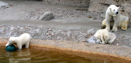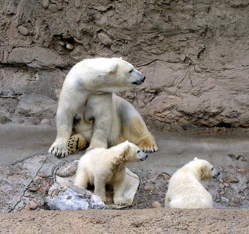 Here are the baby polar bears, Koda and Nuka, with their mom.