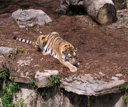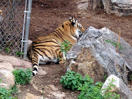 Next was an open pen with a cat needing no introduction - a tiger. He was busy exhibiting Phoebe-like behavior, too. He