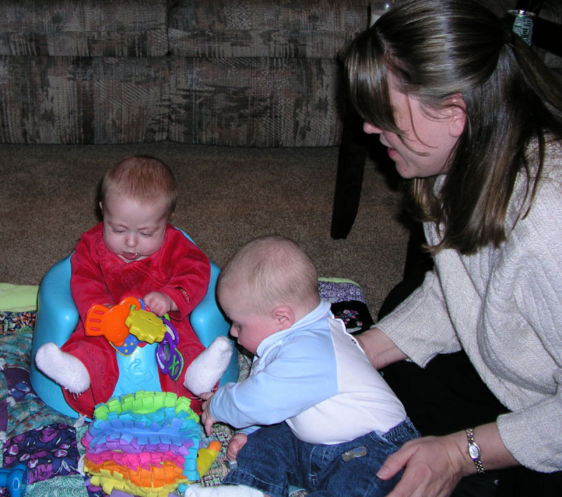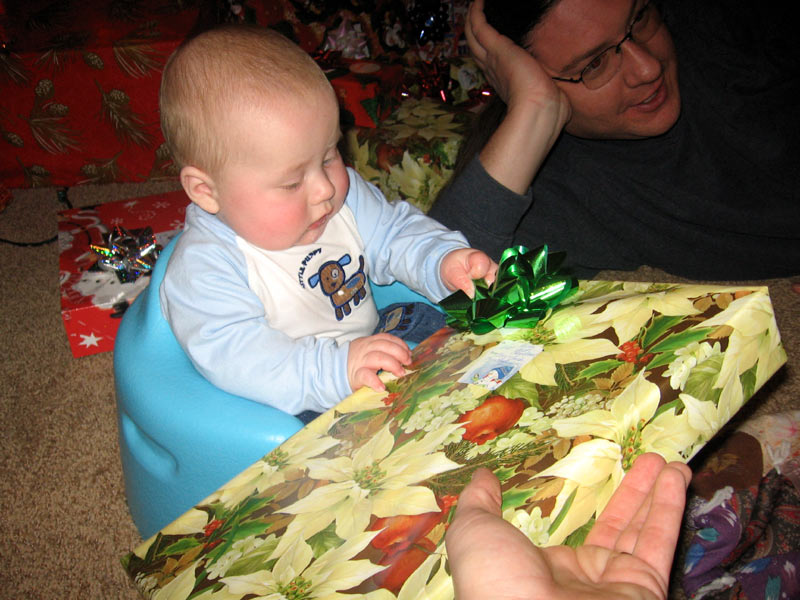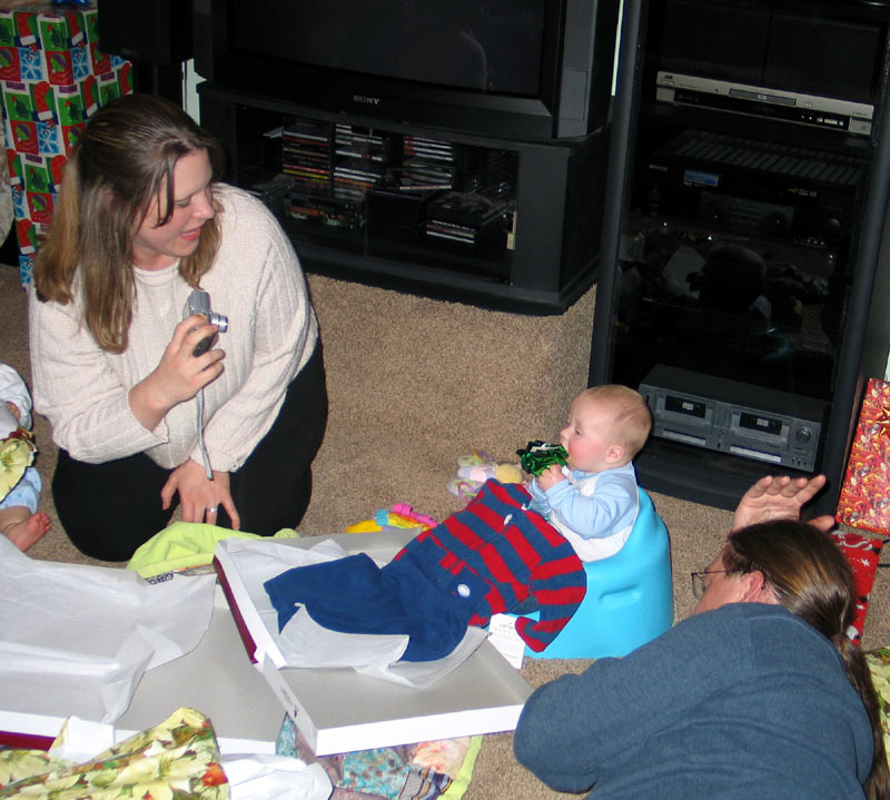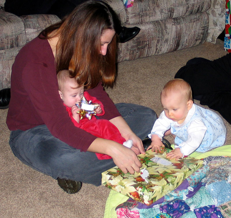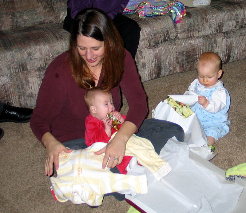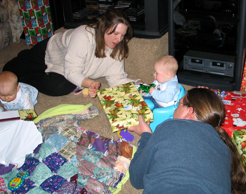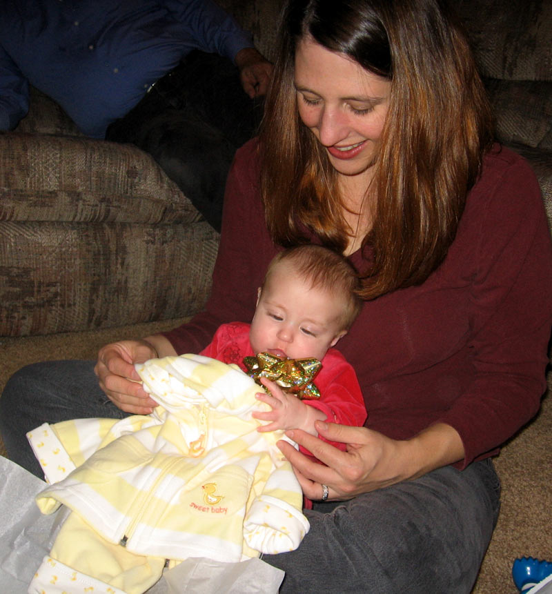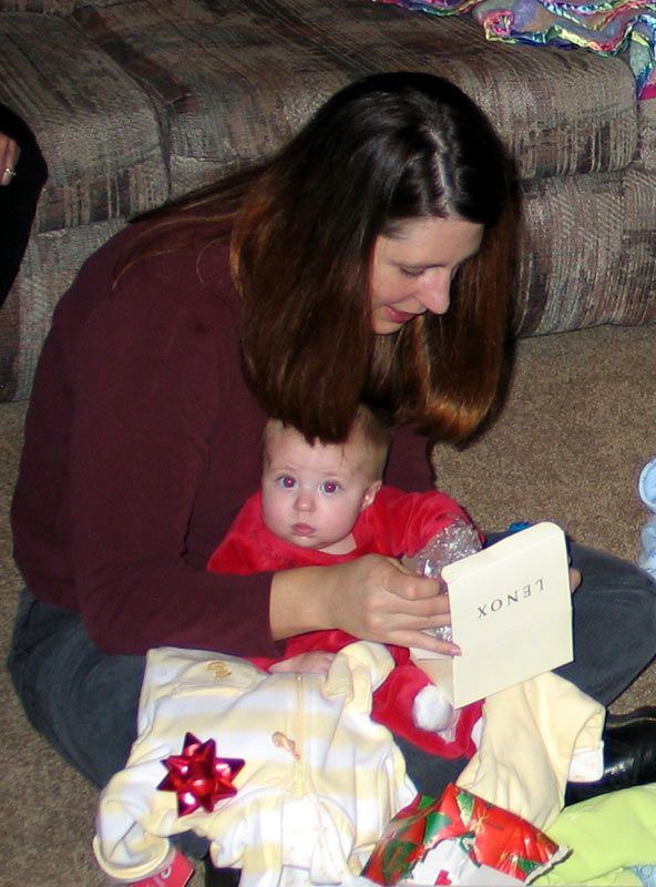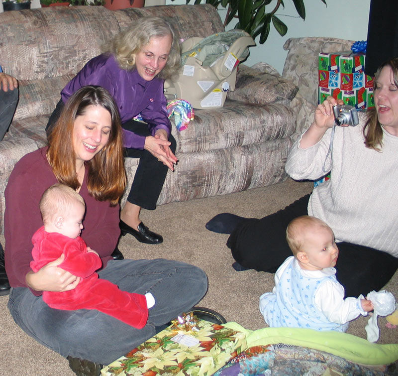 Presents! My parents brought some presents for everyone, there were presents for them, and we brought over "My First Christmas" Lenox giraffe ornaments for Maddie, William, and Hannah.