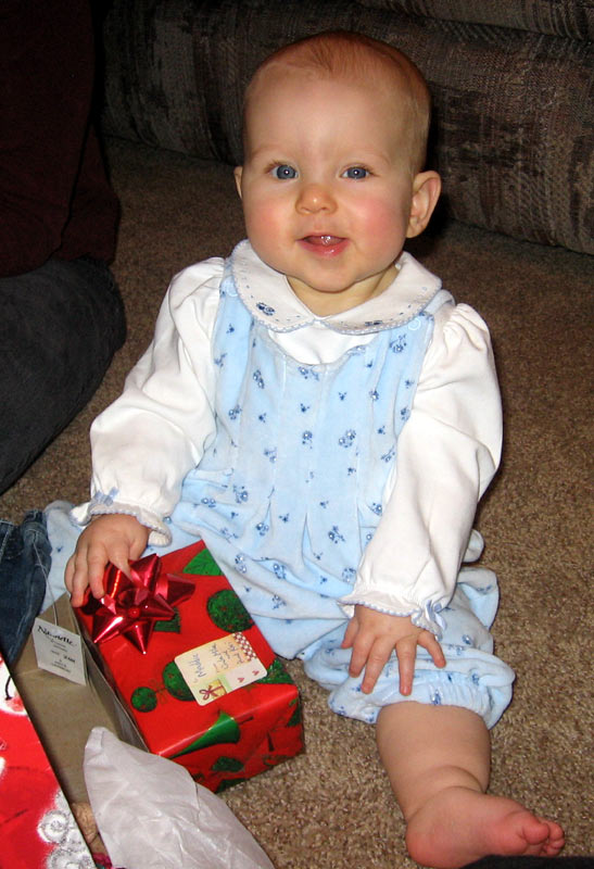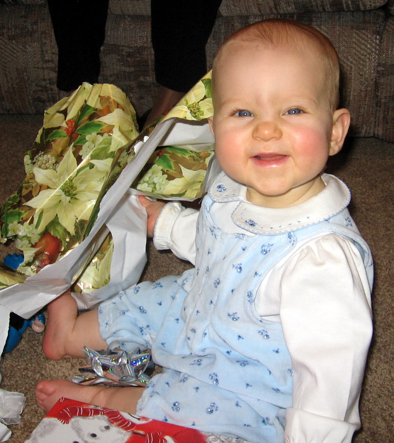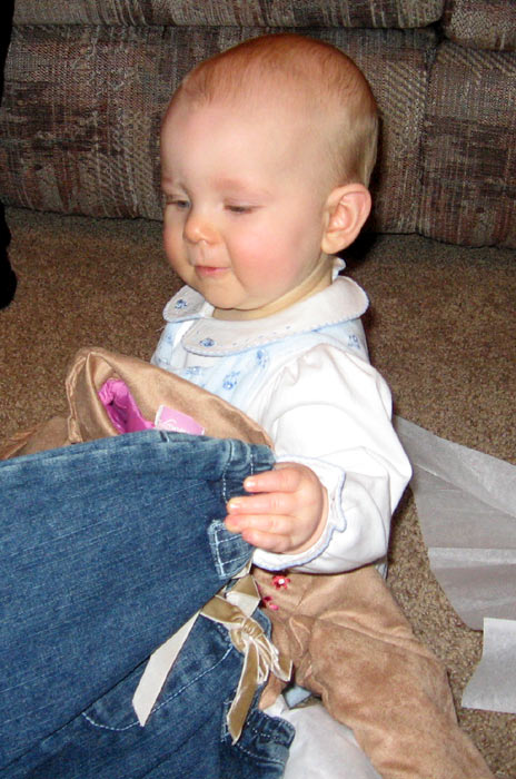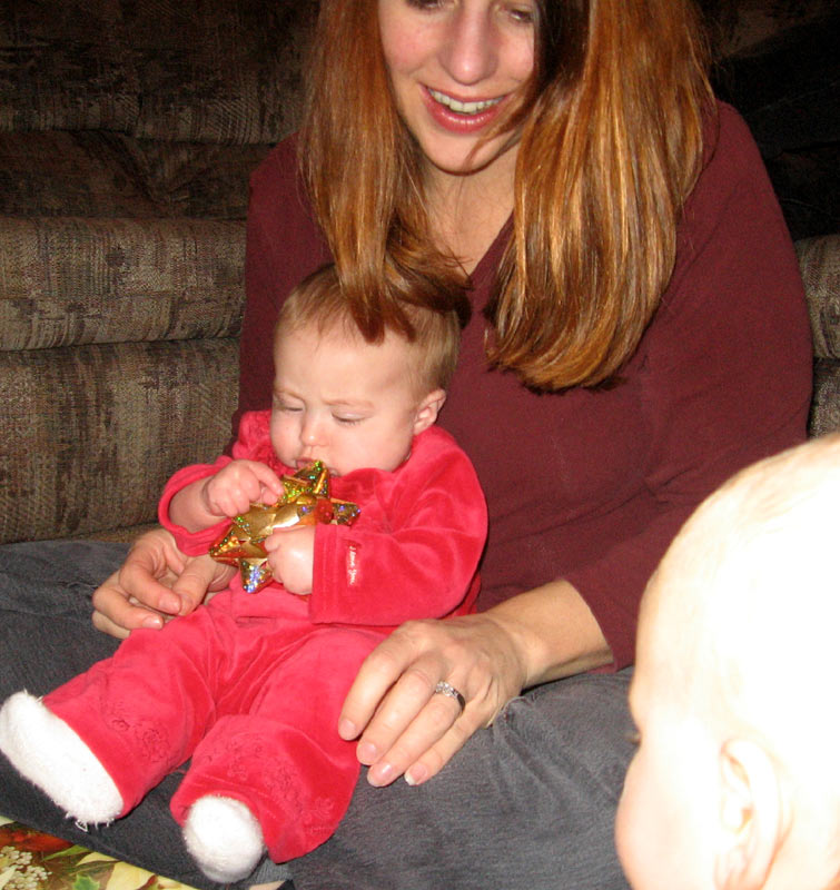 Danielle opened the package from my parents. Hannah liked her bow, too: