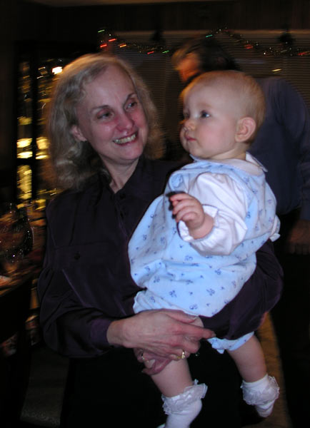My mom goofing around with Maddie, with Dad in the background:
