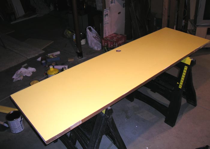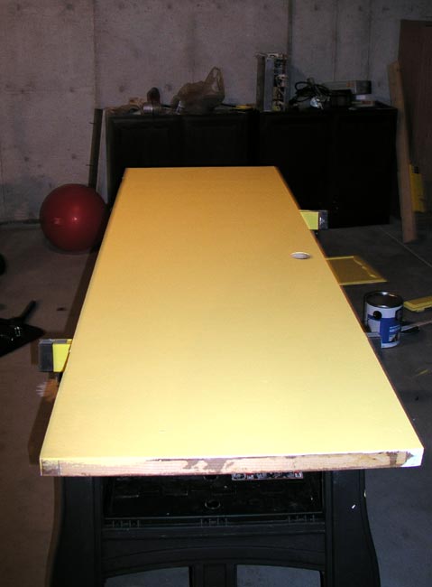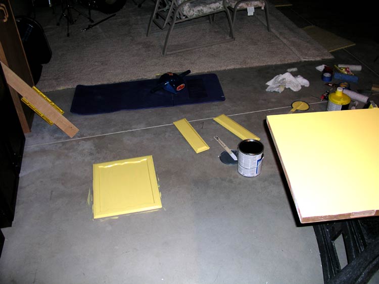 Diana came over today to help with the great sanding and priming project. We got our first look at the new yellow