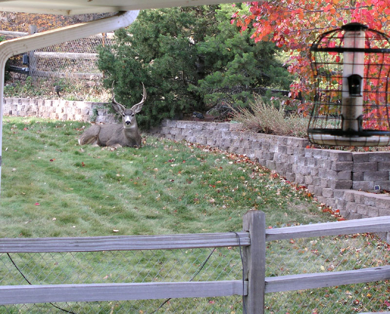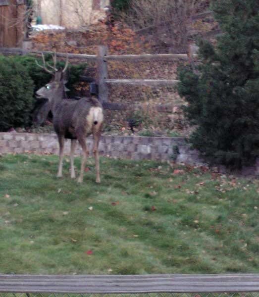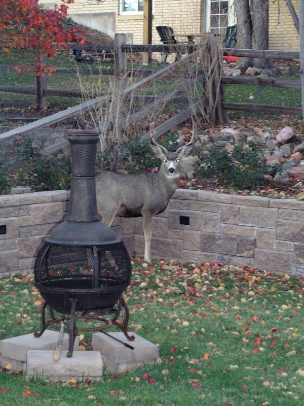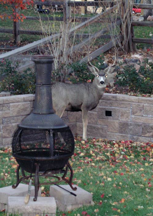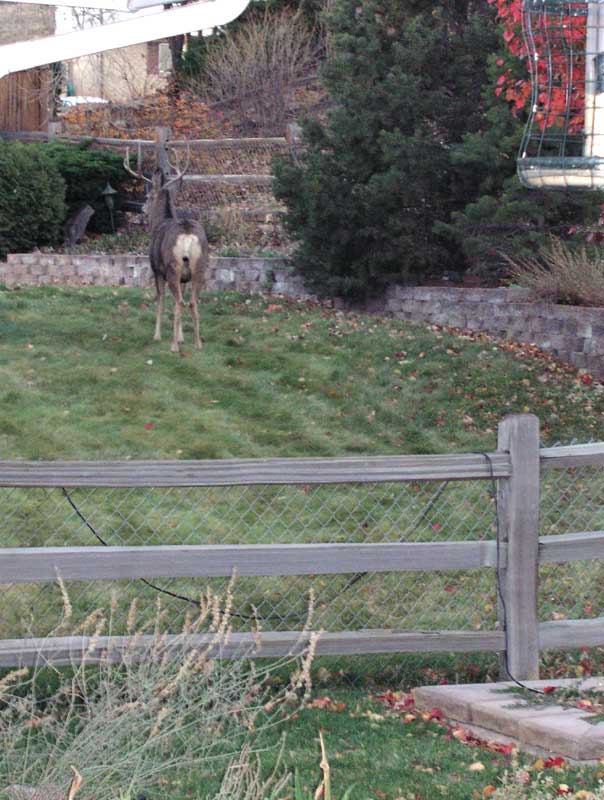 in the backyard eating my rose bushes. Naked with a towel on my head, I poked my head out the patio door,
