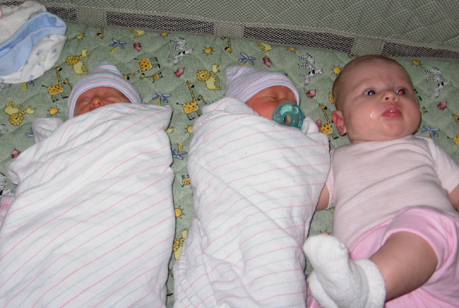 Here's Maddie with her twin cousins, Hannah and William: