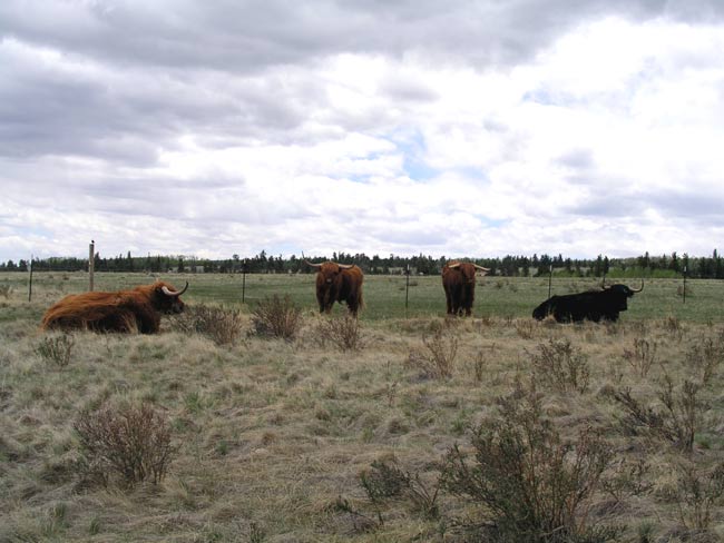 We all went for a walk. The guy who owns the property behind them owns these Scottish long-haired cows: