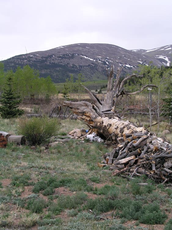 Looking behind the trailer from the fire pit, you can see Mt. Baldy