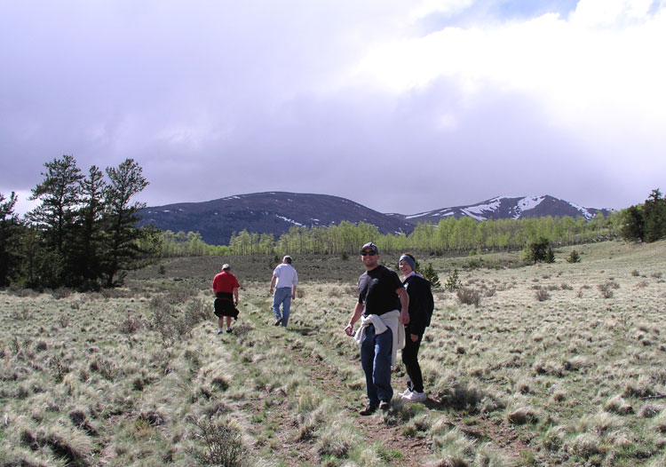 Here's my brother and parents, with Silver Heels (snow-capped mountain) in the background: