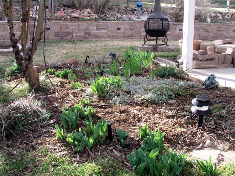 Moving to the front yard, you can see the day lilies starting to come up. Amazingly enough, although you can't see them