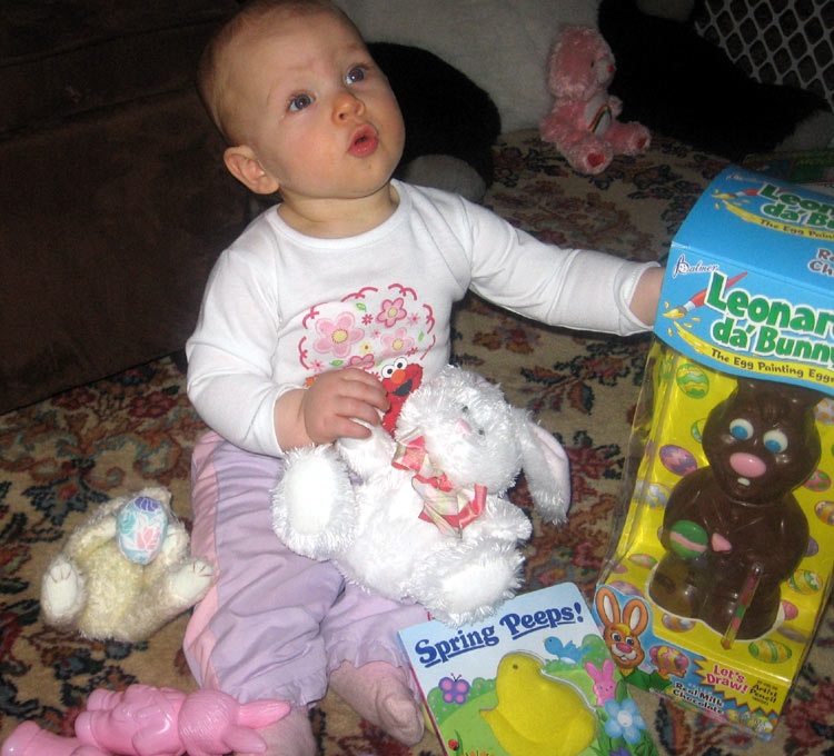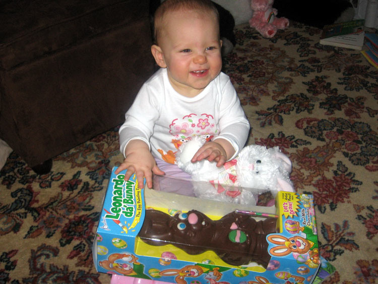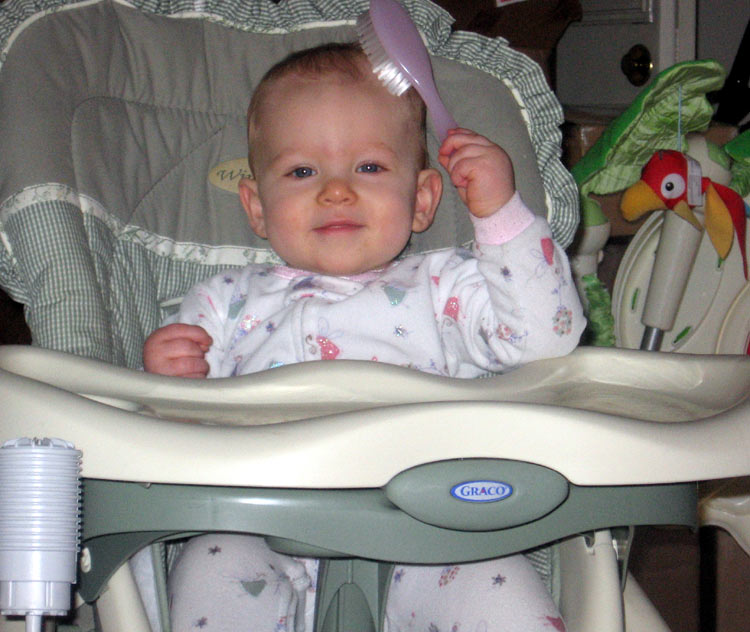 Here are some pictures Rannae and Rob sent us of Maddie: With her book: With her brush: On Easter: In her jacket: