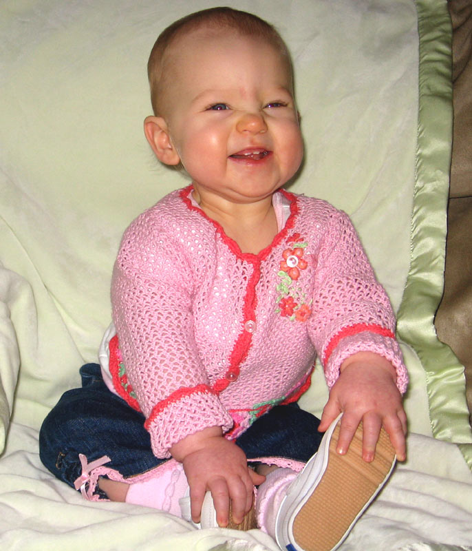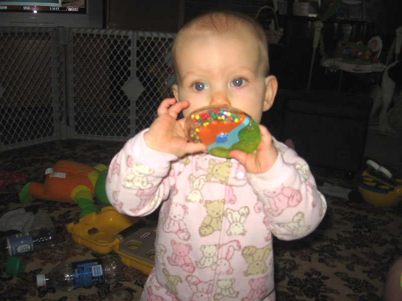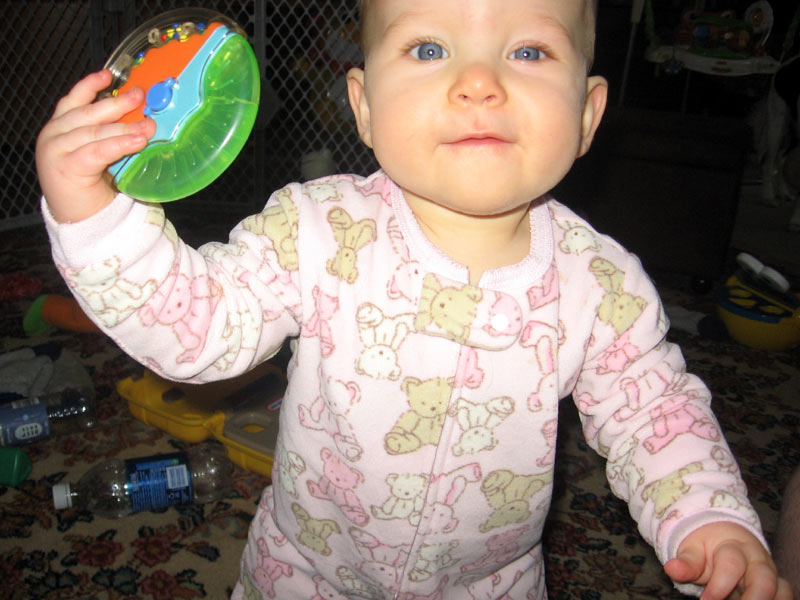 Here are some pictures Rannae and Rob sent us of their daughter (our niece), Maddie. Here she is learning to walk in her fenced in area in the living room: