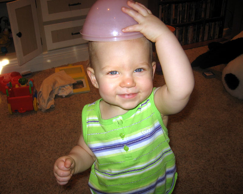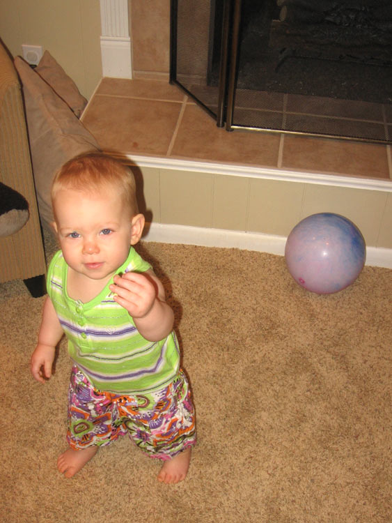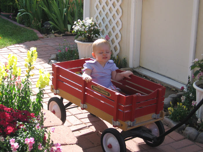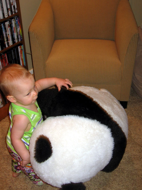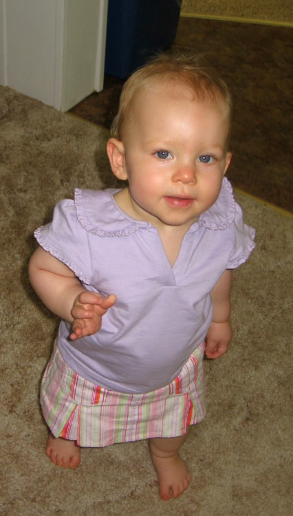 Here are some pictures Rannae and Rob sent us of Maddie: In her grandma's yard: In a car: In a hat: With Panda: Just standing around: