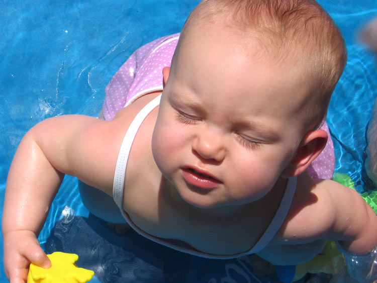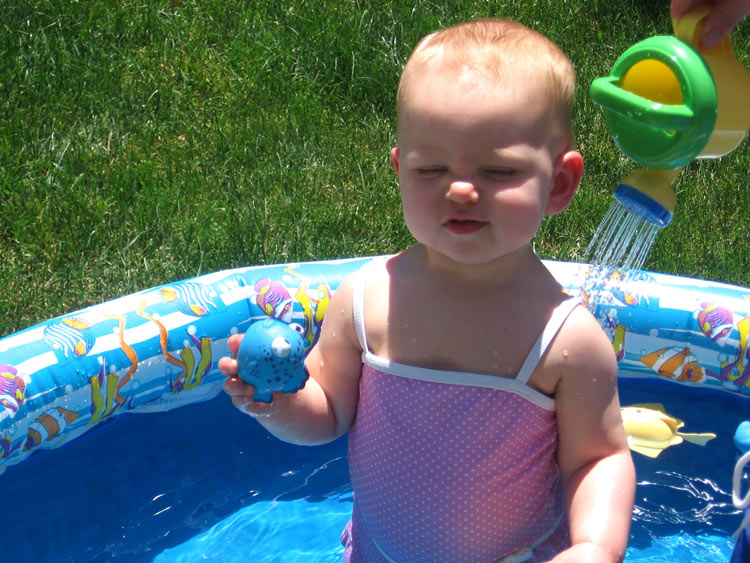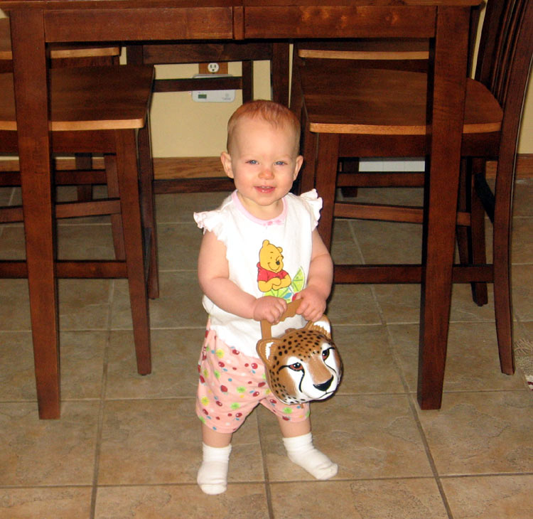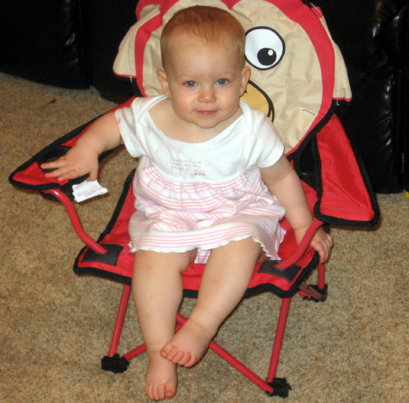 Here are some pictures Rannae and Rob sent us of Maddie: In her chair: With her souvenir from the zoo: In the pool: