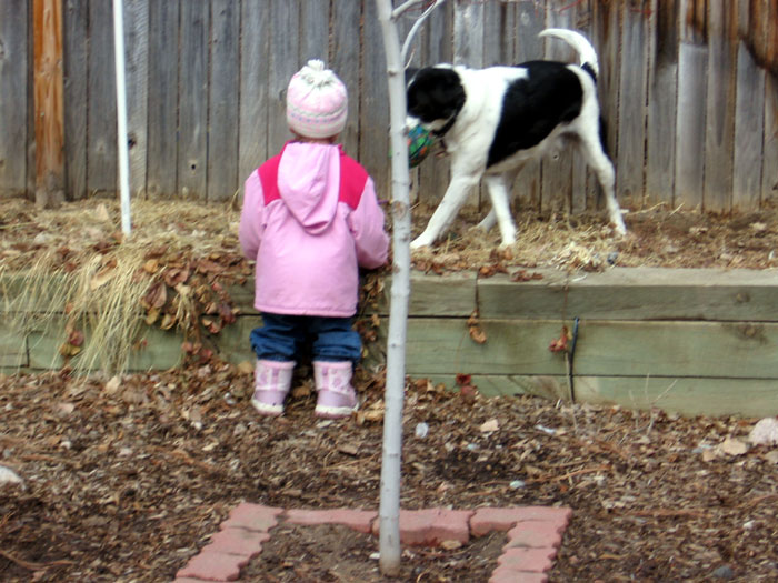 Here are some pictures Rannae and Rob sent of Maddie and Dexter playing in the backyard.