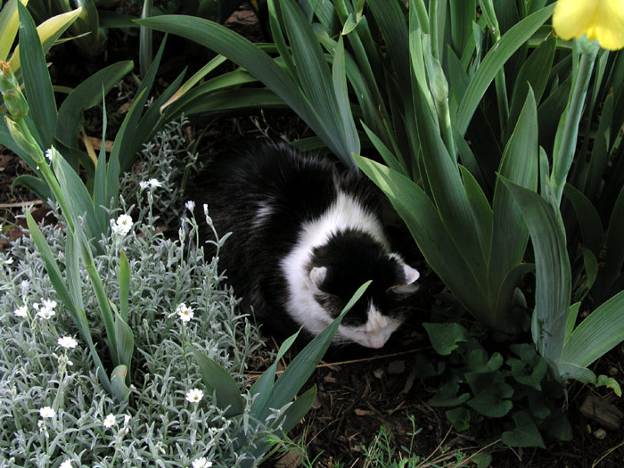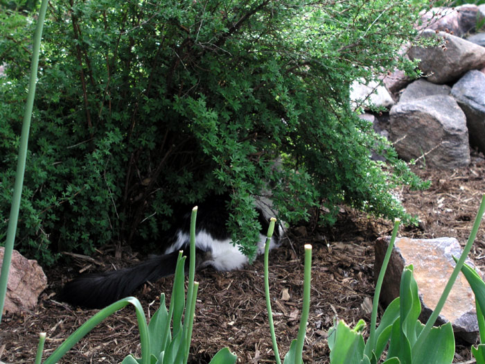 Chloe "hiding" (to her credit, she can do a much better job than that):