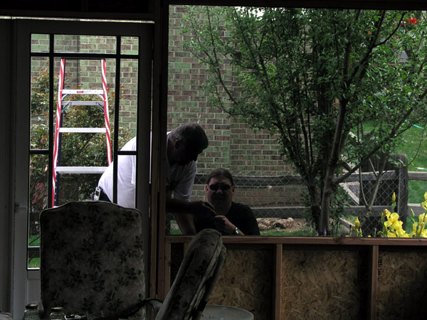 Mike and his dad working on the screen (which actually took quite a bit of effort to install):