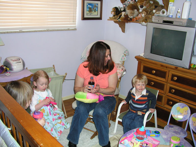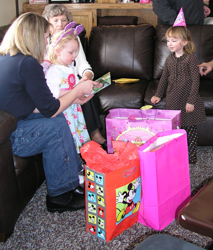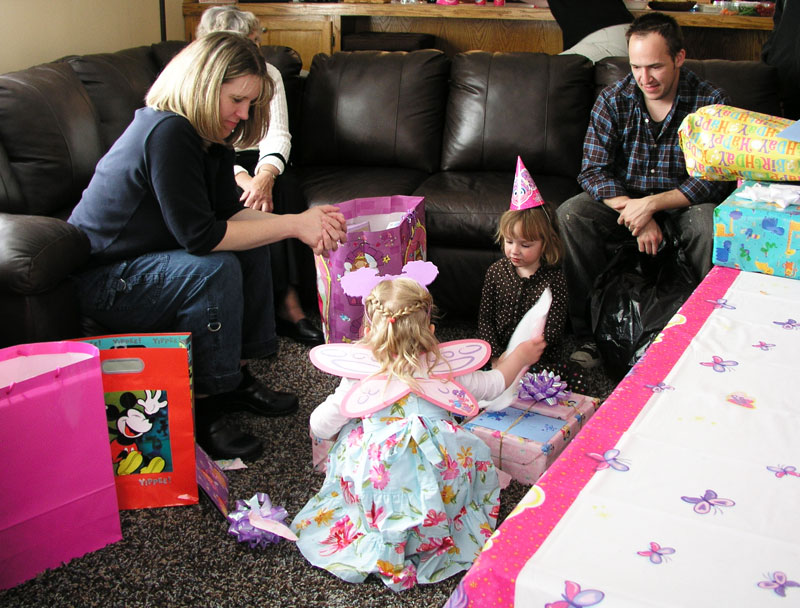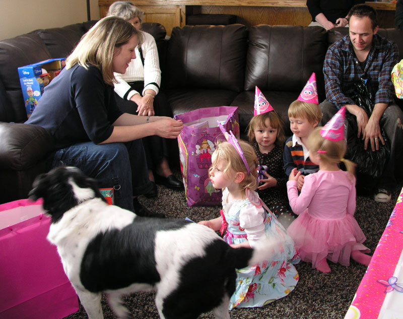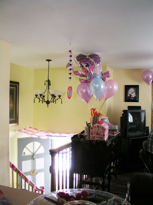Maddie's 3rd birthday is on April 1st, so her parents hosted a family party the Sunday before. Decorations