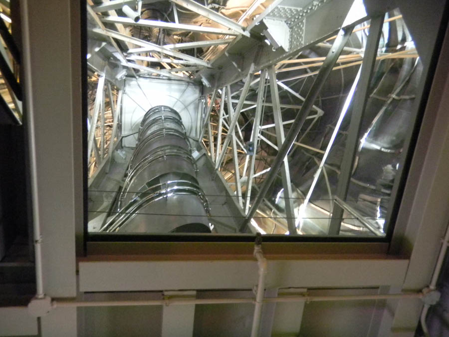 Looking up at the interior framework of the statue (designed by Eiffel before he built the Eiffel Tower):